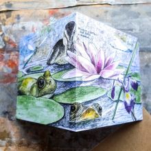 The ‘April’ card is a riot of colour – a pen & ink sketch of a yellow wagtail, yellow daffodils, purple snakehead fritillary, red ladybirds. It is all about the exuberance of April. A crisp white card from the ‘Wild Months’ collection.