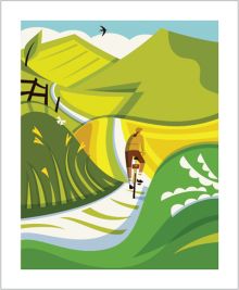 Andrew Pavitt studied Fine Art at Chelsea School of Art. He has worked as an illustrator and, more recently, as a printmaker. He draws inspiration from mid-20th-century British landscape painters, as well as lesser-known decorative designers such as Peggy Angus. Shape, pattern, and carefully chosen colours combine to convey the sweeping beauty and drama of the British countryside.
