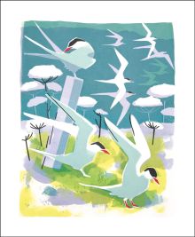 Having travelled the world to make wildlife films for the BBC NHU and National Geographic, Jane has now settled on the west coast of Scotland where she uses painting and print-making to express her thoughts about the natural world. This print was made to publicise the RSPB’s work to protect the peatlands on the Hebridean Island Islay.