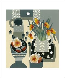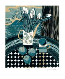 Jane uses the reduction lino technique to produce handmade limited edition prints. She is fascinated by the bold, graphic and sculptural qualities of her medium. Her inspiration comes from very ordinary things and the patterns they create when you put them together.
