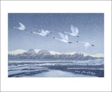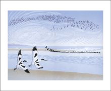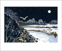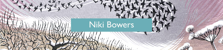 Norfolk born Niki Bowers studied at Canterbury College of Art before becoming a freelance graphic designer. Inspired by Norfolk landscape and wildlife, she cites Sybil Andrews and John Nash as among the influences on her distinctive linocuts.