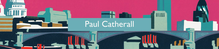 Paul Catherall is a London based printmaker and illustrator, renowned for his bold linocuts of architectural landmarks. He has created illustrations for well-known books such as The Cloudspotter’s Guide as well as limited edition works for the Southbank Centre and a series of high profile posters for London Underground. Combining an expert eye for composition and colour with consummate draughtmanship, he creates his prints entirely by hand in a painstaking relief process that takes several weeks to complete.