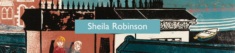Printmaker, designer, painter and teacher, Sheila Robinson studied at Nottingham School of Art and the Royal College of Art, where she met and married Bernard Cheese. She assisted Edward Bawden with his mural at the Festival of Britain 1951. Mother of Chloe Cheese, she moved to Great Bardfield in 1957 and shortly after joined the staff of the Royal College of Art where she taught until1988. Many examples of her work are in the Fry Art Gallery, Saffron Walden.