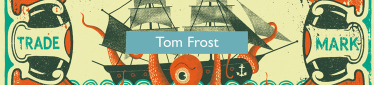 Tom Frost studied illustration at Falmouth College of Art, and since graduating in 2001 has been working as a freelance illustrator in Bristol. For three years he has been a member of Snap Studios in central Bristol pursuing his love of screen printing. His work is inspired by his passion for old match boxes, vintage tin toys, folk art, children’s books and stamps. Utilising screen printing, plywood, vintage Meccano, acrylic paint, Gocco machines and perspiration, he hopes to create items that people will cherish for years to come.
