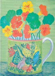Debbie George’s work is a celebration of her passion for flowers and the objects with which she surrounds herself – from ceramics to fruits, feathers and stones. Landscape is an important influence that underlies her paintings, whether they are of particular places or still-life compositions.