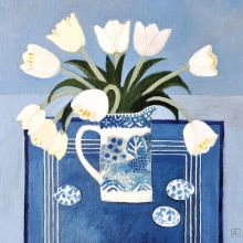Jill Leman was born in the USA, but has lived in England all her life. Spent two years at Colchester Art School, where John Nash and Edward Bawden were tutors, followed by The Central School of Art & Design in London. Her flower still-lifes, with their decorative vases, fabrics and familiar junk shop finds, have a pristine freshness and subtle vibrancy rare in modern British Art. She is an associate member of The Royal Watercolour Society.