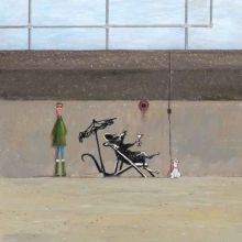 Chris Williamson is an artist working from his studio in Barton Le Clay, Bedfordshire. Predominantly oil on panel, his work features a Jack Russel dog (Barton Darcy), and his owner, (Garfield Eldritch). Simple ditties accompany the work - 4 line poems about the work as the dog sees it.