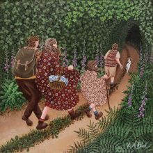 She paints mostly in acrylics on board and takes inspiration from everyday life - especially her three daughters. Domestic scenes feature regularly in her paintings, depicting a romanticised, gentler look at life. Lucy's work takes you away from a sometimes troublesome world into a world of floaty dresses, country walks and snuggling up with a good book.