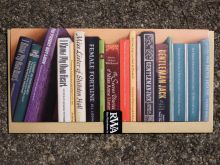 I started working on a series of paintings of bookshelves and this led to many conversations with viewers about which books they would have on their shelf and why. Thus the idea of building up a bookshelf reflecting one’s life and loves evolved, and the Shelf-Portrait was born!