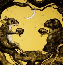Most of Tamsin's artwork is painted onto English mouthblown glass and fired to give a strong woodcut-like image against the luscious colours of the glass. Over the past twenty years Tamsin has built up an ever expanding following of international collectors.