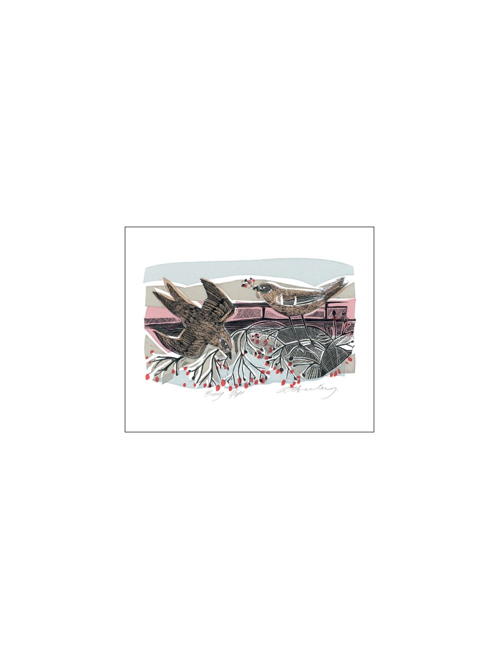 Berry Gift a lino and screenprint by Angela Harding Art Greeting Card
