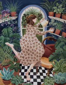 Domestic scenes feature regularly in her paintings, depicting a romanticised, gentler look at life. Lucy's work takes you away from a sometimes troublesome world into a world of floaty dresses, country walks and snuggling up with a good book.
