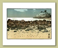 Carreg Mulfran Greeting Card by Ian Phillips Linocut Artist
