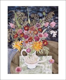 Dahlias, Dark Sky / Late Summer Flowers and Ferns from watercolours by Angie Lewin 10 Notecards
