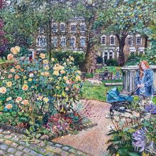 Melissa Scott-Miller paints mainly urban landscapes, specialising in London where she was born and still lives, as well as interiors and portraits of people in their surroundings. She is fascinated by light and pattern and texture, particularly on bricks and slates of London buildings and the flora and fauna found in city gardens and parks.<p> Melissa likes to work outside, and sometimes from windows, where she can paint larger views. Often favouring unusual viewpoints and with close ups of bricks and leaves in the foreground. She paints with very small brushes, putting great care and attention into each section and generally not going back to it.