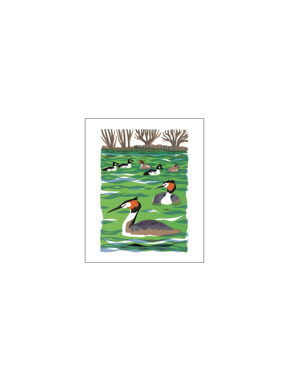 Great Crested Grebe and Goldeneye (Tweet of the Day) Screen print by Carry Akroyd
