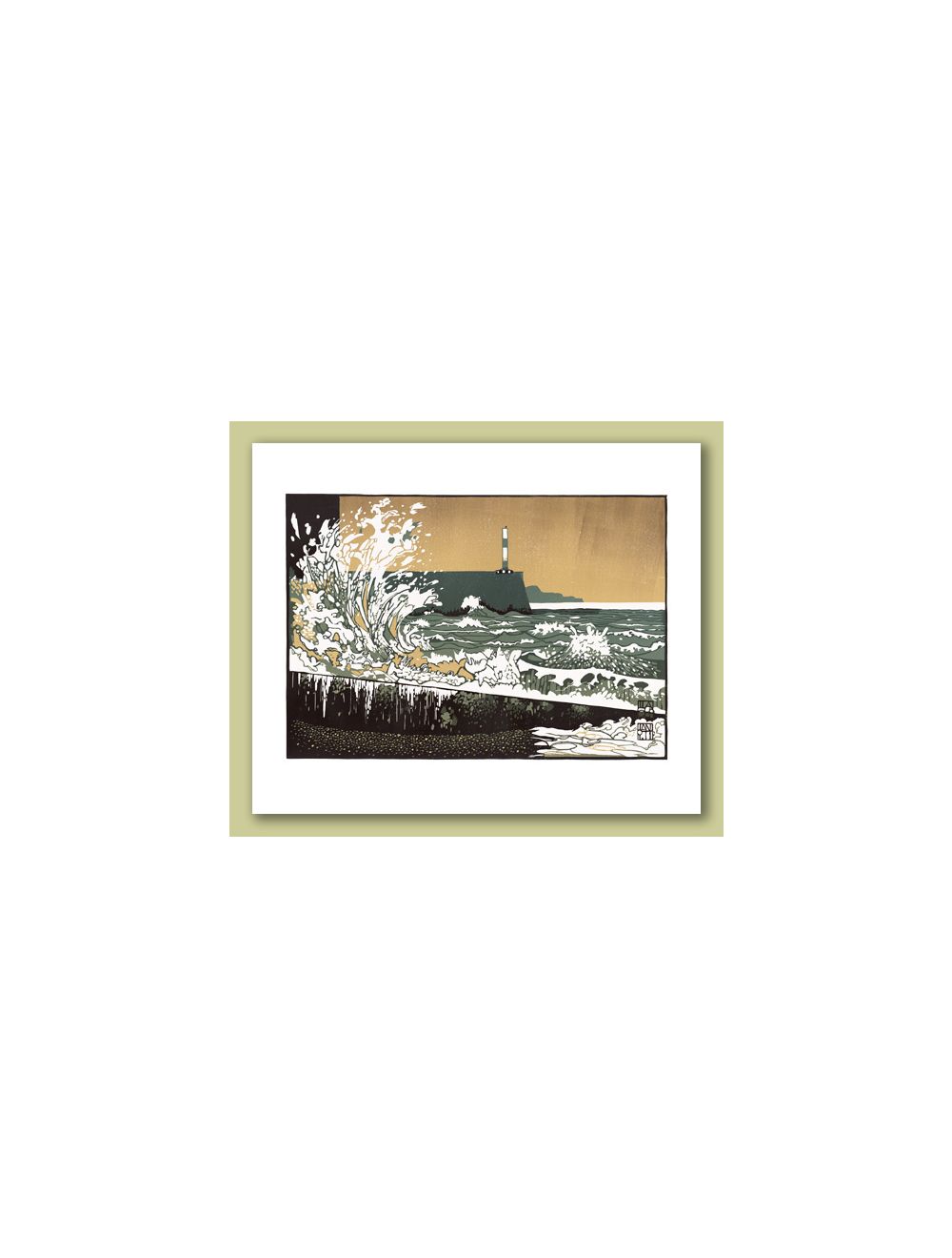 Great Wave at Aberystwyth Greeting Card by Ian Phillips Linocut Artist
