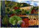 From an original painting: Inks, gouache, acrylics, gold leaf and gold thread.