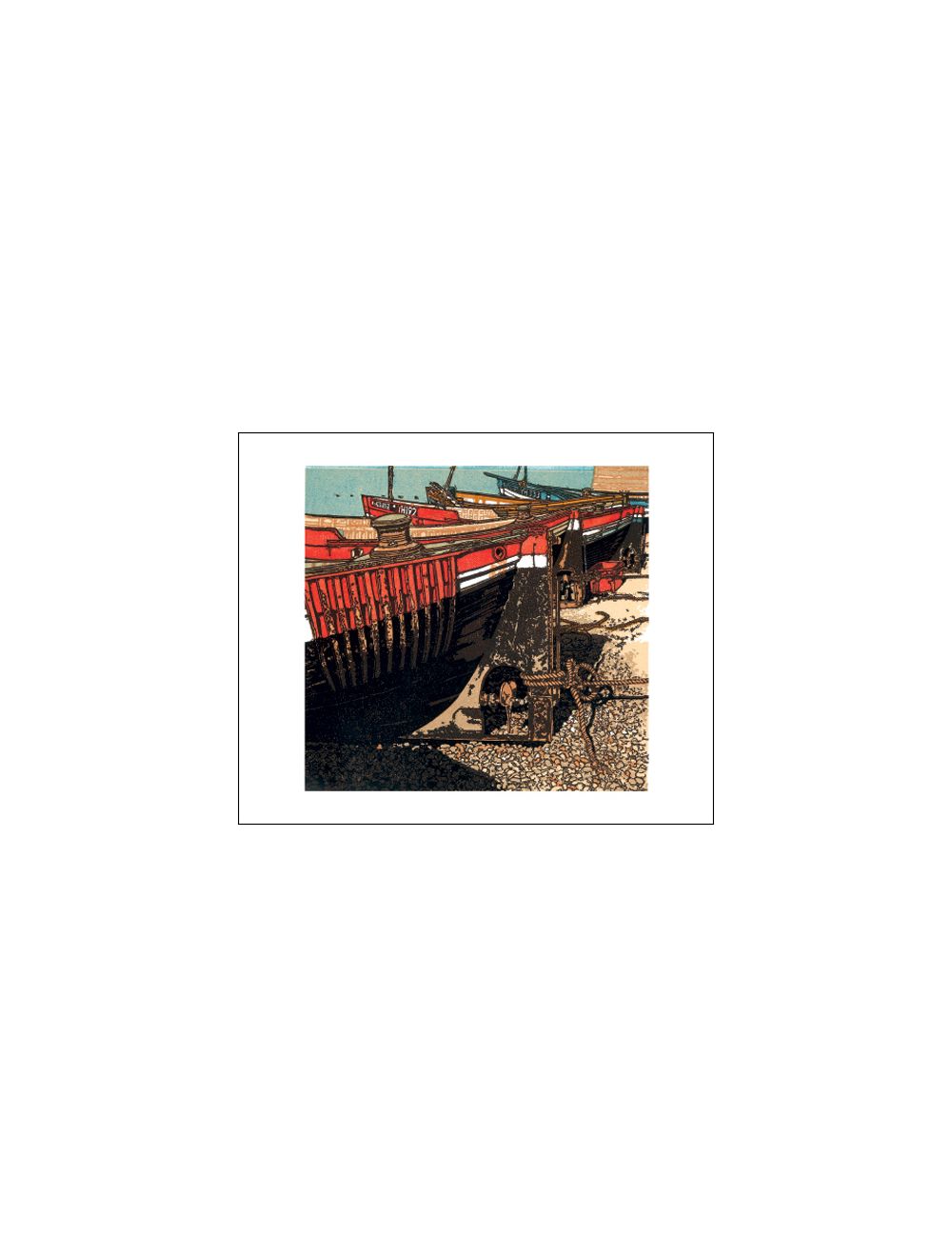 H. J. Jackson is a Senior Fellow of the Royal Society of Painter Printmakers and a member of the Society of Wood Engravers. He cut his first lino block during his last year at school in 1953 and subsequently attended the Norwich Art School. The declining fishing industry, derelict buildings and Norfolk scenes feature strongly in John’s work. His printing is carried out entirely by hand-burnishing, using a tobacco tin.