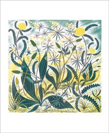 Angie Lewin creates limited edition linocut, wood engraving, lithograph and screen prints – often inspired by skeletal plant forms seen against the sea and sky of North Norfolk and the Scottish Highlands. She is a member of the Royal Society of Painter-Printmakers and of The Society of Wood Engravers.