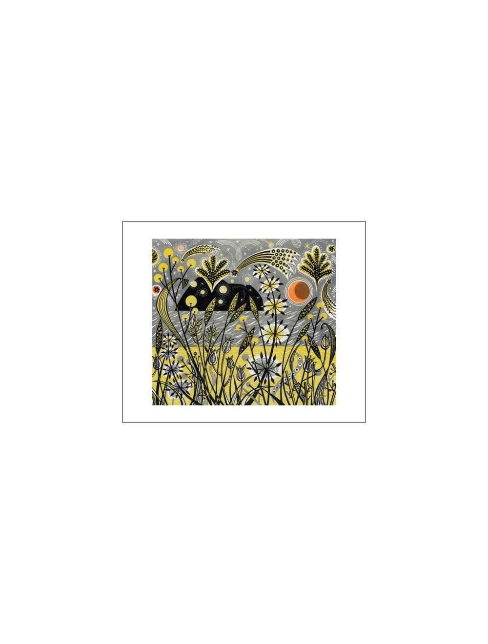 Island Celebrations linocut by Angie LewinThe single cards are 140mm x 170mm, are printed on matt felt board and the image area is embossed. They are packed with a buff coloured envelope in a biodegradable cello sleeve.