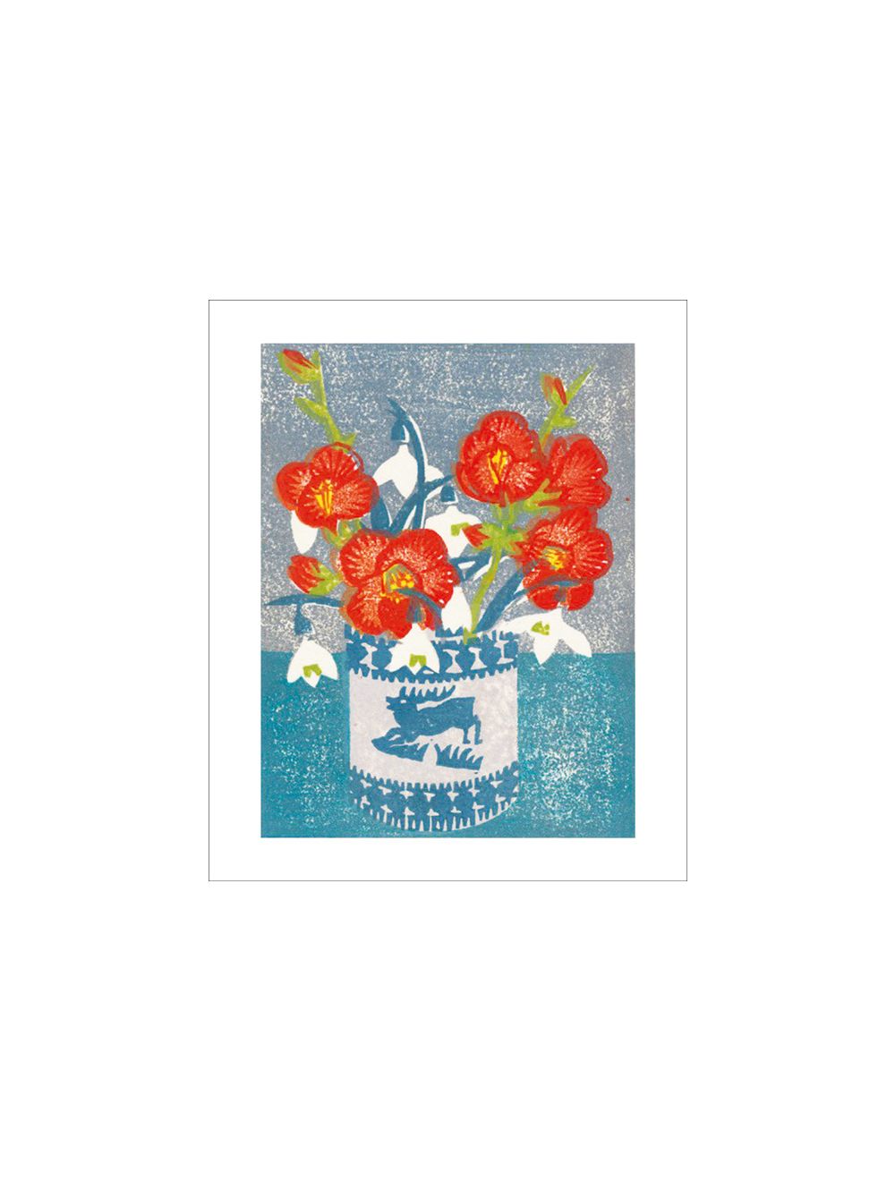 Japonica and Snowdrops Woodblock Print by Matt Underwood