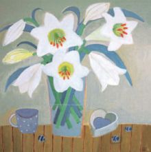 Jill's starting point for her paintings is colour, her subjects are mainly flowers and still life. Her inspiration comes from the garden, bits and bobs of china, scraps of fabric, and little objects collected or inherited over the years