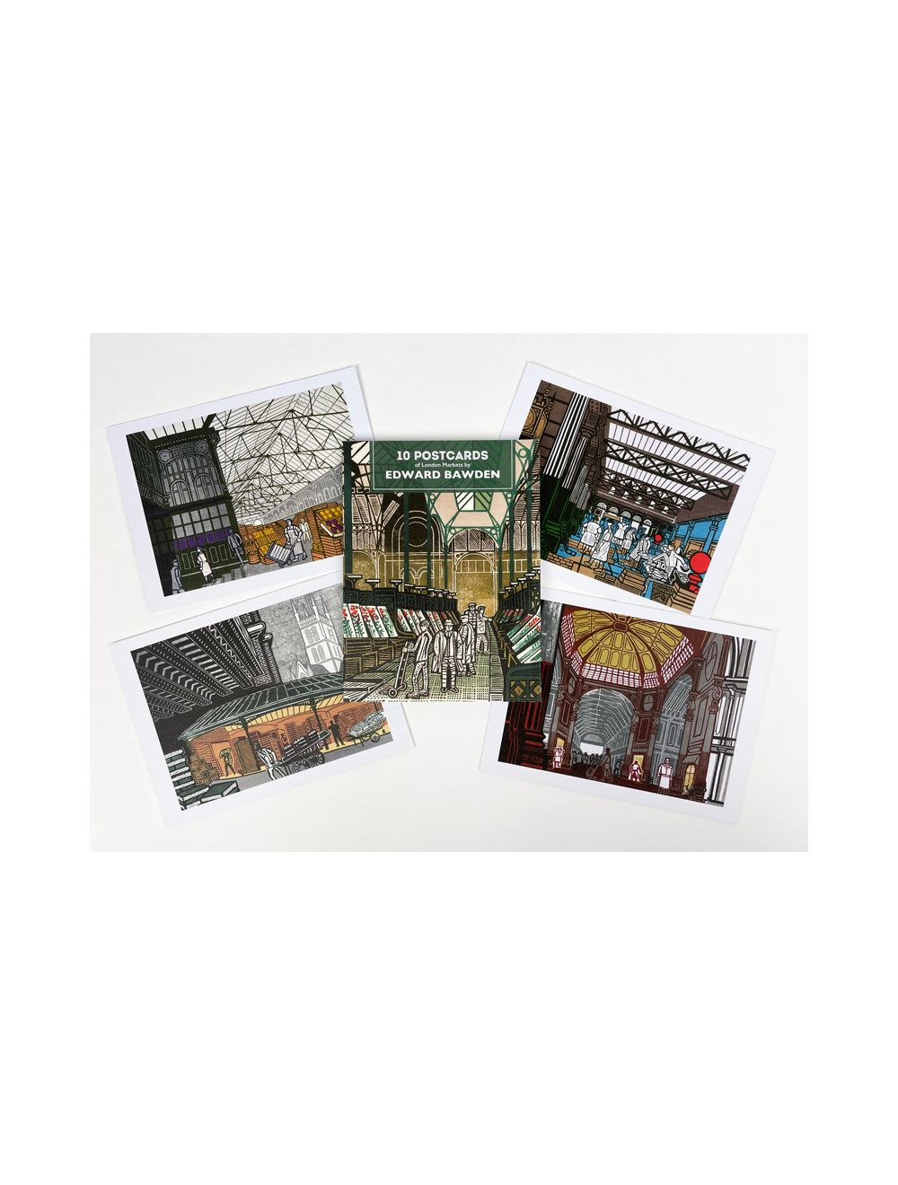Two of each of five postcards from the London Markets series by Edward Bawden