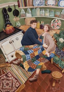 Domestic scenes feature regularly in her paintings, depicting a romanticised, gentler look at life. Lucy's work takes you away from a sometimes troublesome world into a world of floaty dresses, country walks and snuggling up with a good book.