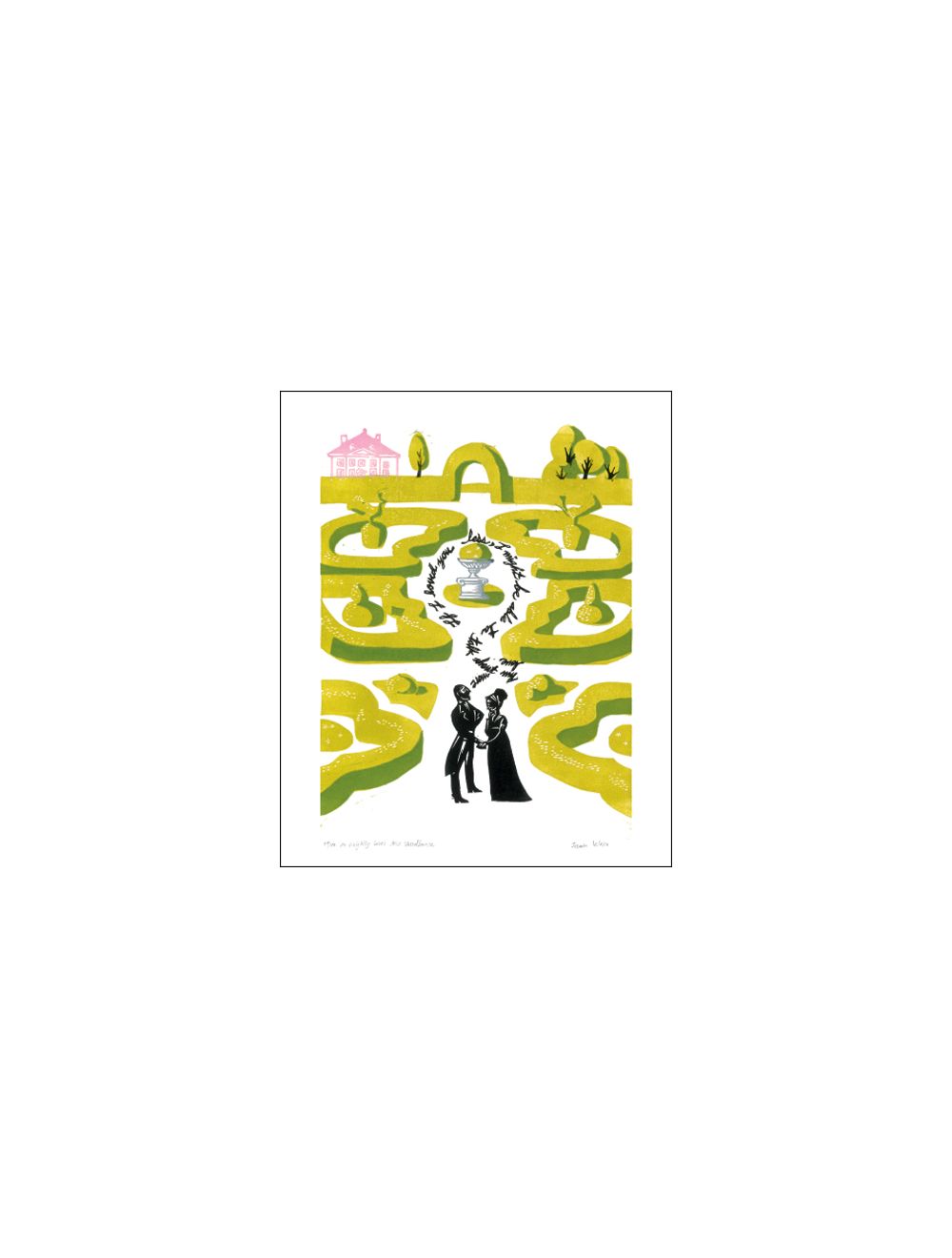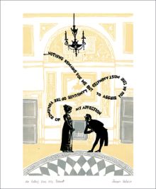 Mr Knightly loves Miss Woodhouse Linocut by Jazmin Velasco