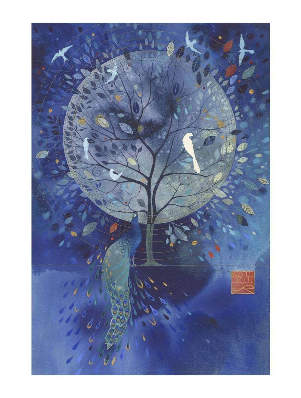 Original media: Collage, inks, gouache, acrylics, gold leaf and gold thread.