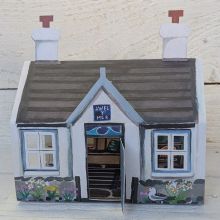 Lizzie studied Stage design at university and has bought her love for setting scenes into these perfect little houses. ‘Plas Bach’ means small place and is a beautiful country cottage with flowers, a Blackbird and chickens pecking around.