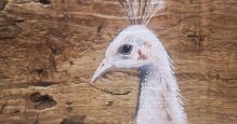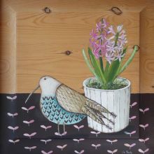 Liz Toole – Paintings On Wood. The majority of Liz’s work is painted onto pieces of recycled wood and wooden objects using a mixture of acrylic, coloured pencils and pen. Using worn pieces of wood as a canvas gives the work an unusual sense of history. Painting onto an object and working with a three-dimensional material also relates back to Liz’s ceramic roots.