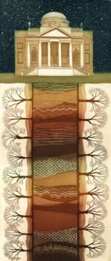 Her etchings and monotypes of the North-East landscape have deep, glowing colours and delicate textures. She uses a wide range of hand-printed marks to convey the patterns of fields, hills and hedgerows.