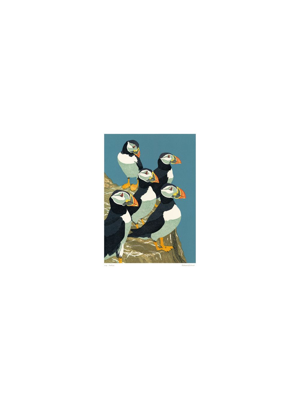 Puffins Linocut by Robert Gillmor