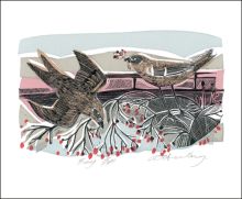 Angela Harding studied Fine Art Printmaking and painting at Leicester Polytechnic followed by an MA in Fine Art at Nottingham Trent University. The recurring inspiration for Angela's work is the flora and fauna of the British countryside. Her studio looks out over the farmland landscape of Rutland. Fields of sheep and the soft greens, greys and blues of this land form the backdrop for her paintings and prints. Angela does not strive for a literal portrait but attempts to capture the mood and atmosphere of her surroundings. There is an allegorical aspect which references British painting of the 30s, 40s and 50s and artists such as Eric Ravillious, David Jones, and Winifred Nicholson.