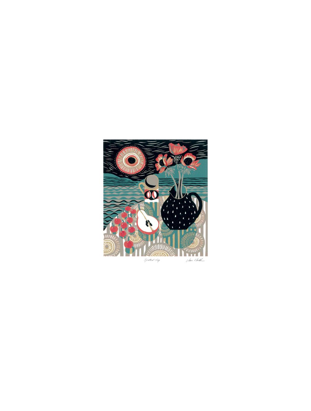 Jane uses the reduction lino technique to produce handmade limited edition prints. She is fascinated by the bold, graphic and sculptural qualities of her medium. Her inspiration comes from very ordinary things and the patterns they create when you put them together.