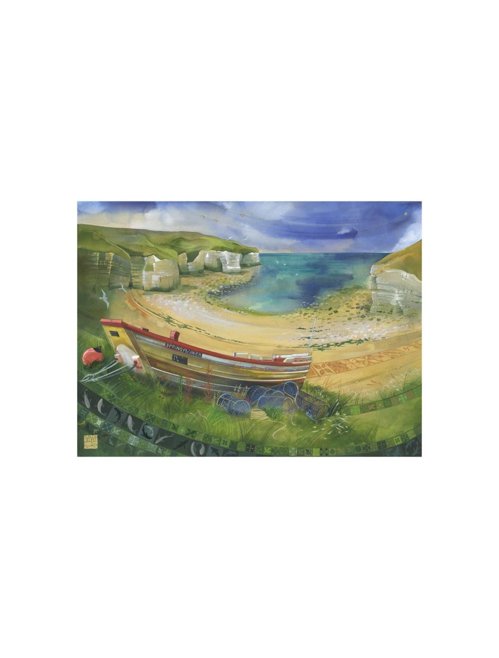 Painted in 2019 for ‘Catching the Light', a solo exhibition at Chantry House Gallery. Flamborough Head Cove, on a beautiful hot July day in 2018. I’m not sure if the Springflower is seaworthy, but I loved the way the curves of the boat echoed the curves of the cove. The chalk cliffs make the water a beautiful turquoise blue.