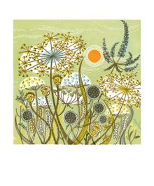 Angie Lewin creates limited edition linocut, wood engraving, lithograph and screen prints – often inspired by skeletal plant forms seen against the sea and sky of North Norfolk and the Scottish Highlands. She is a member of the Royal Society of Painter-Printmakers and of The Society of Wood Engravers.