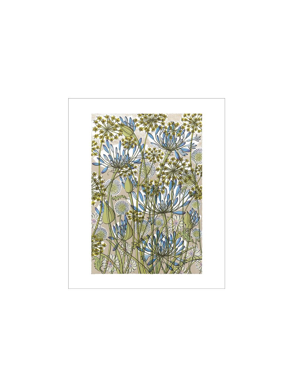 Angie Lewin creates limited edition linocut, wood engraving, lithograph and screen prints – often inspired by skeletal plant forms seen against the sea and sky of North Norfolk and the Scottish Highlands. She is a member of the Royal Society of Painter-Printmakers and of The Society of Wood Engravers.