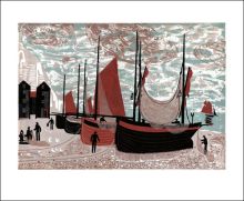 The Whitstable Oyster Fleet Linocut by Melvyn Evans