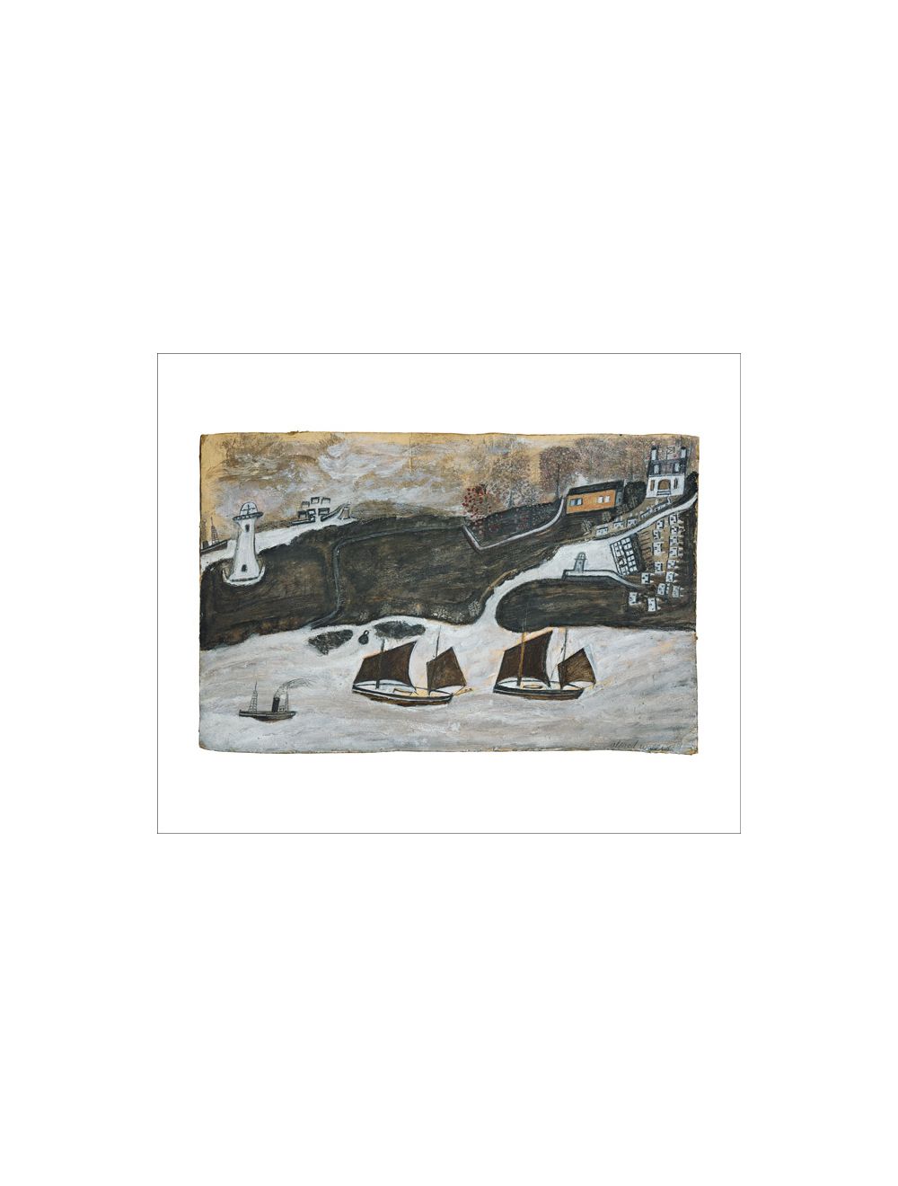 Two Ships and Steamer Sailing Past a Port, Falmouth and St Anthony Lighthouse, 1931