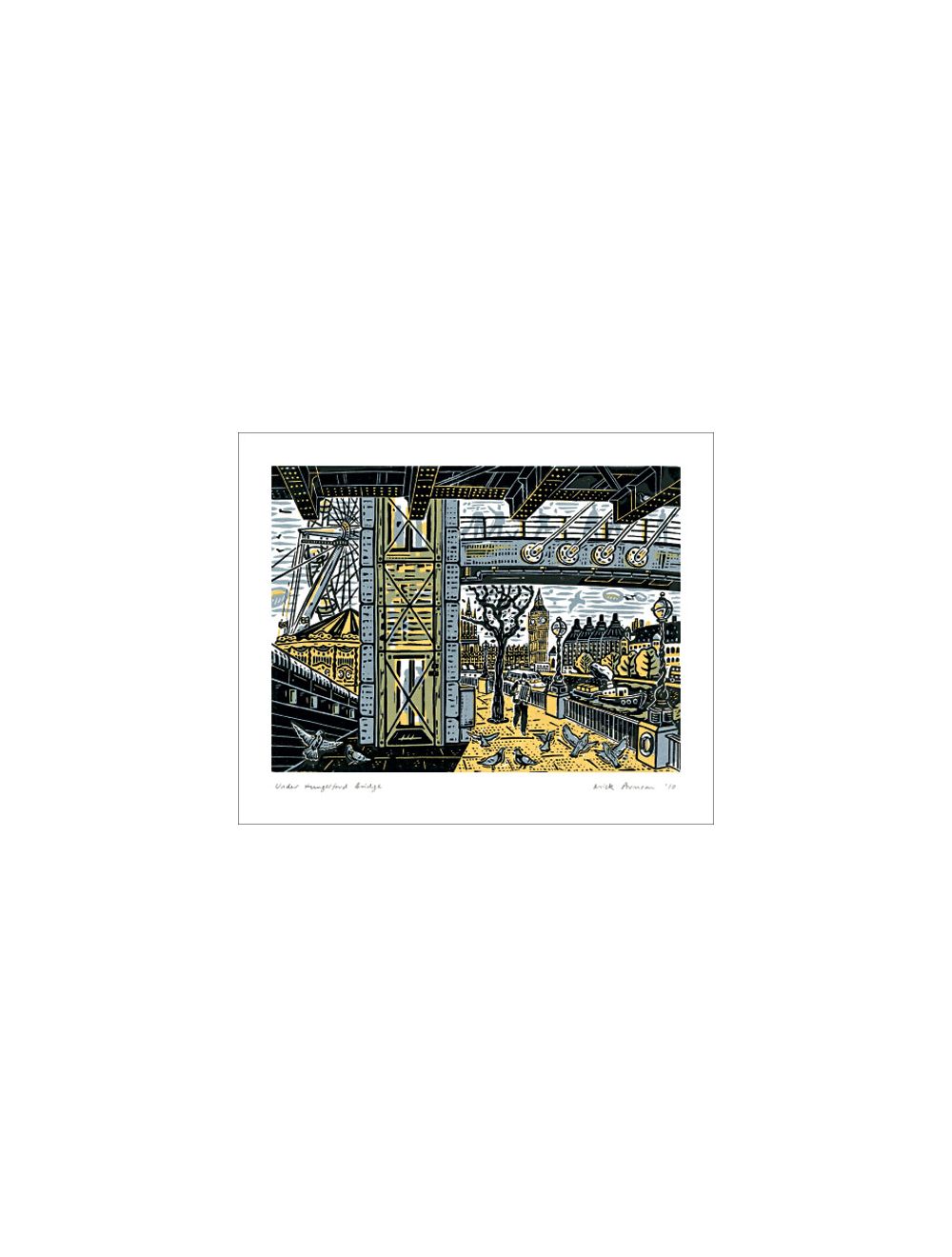 Under Hungerford Bridge linocut - Mick Armson Art Greeting Card