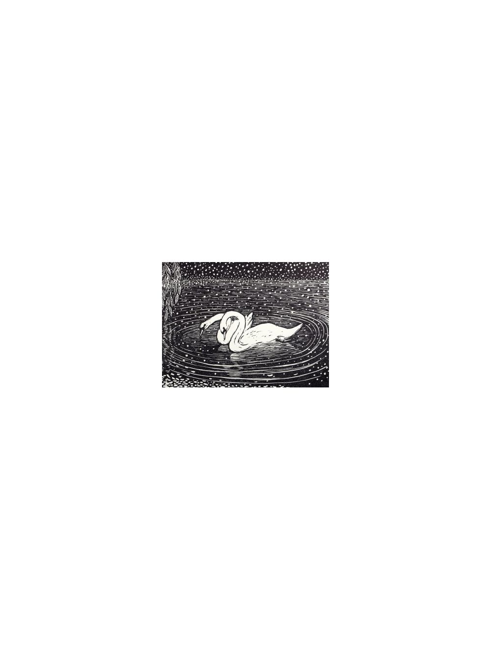 Windrush swans linocut by Miranda Mott